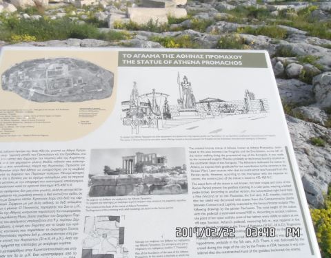 目前卫城山上只有一个底座和文字介绍,如照片铜像早就不在卫城山上了,大概在公元前5世纪铜像的主体就被移到康斯坦丁堡,然后在1204年被损毁。目前卫城山上只有一个底座和文字介绍,如照片。