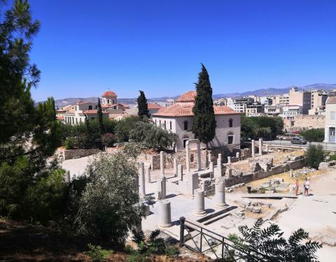 可选择搭乘地铁绿线至Monastiraki站下车。