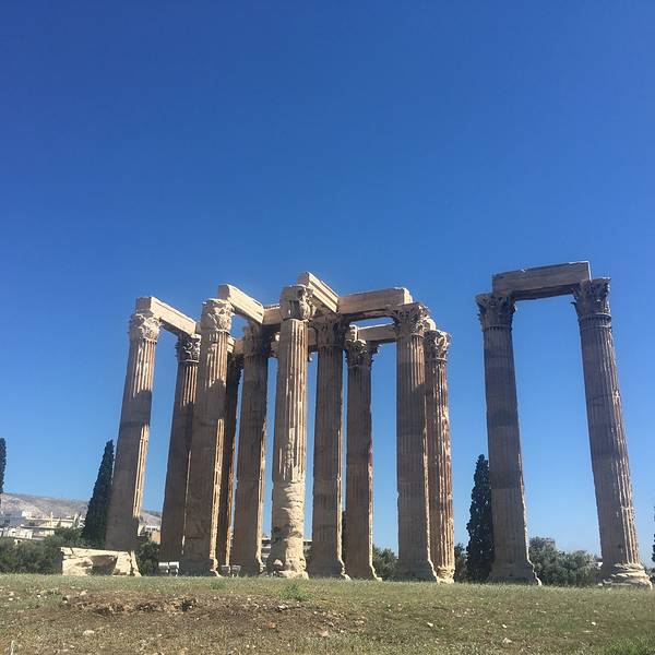 曾经的宙斯神庙是一共有104根美丽的科林斯式列柱,但如今只剩下了这十几根宙斯神庙如今也就只剩下了一堆柱子,一共是有13根。其中10根比较集中,石柱上方还托举着门廊;另外三根在较远的地方,其中有一根已经倒塌,躺在地上,断成了数截,只有两根还直挺挺的立着。曾经的宙斯神庙是一共...宙斯神庙如今也就只剩下了一堆柱子,一共是有13根。其中10根比较集中,石柱上方还托举着门廊;另外三根在较远的地方,其中有一根已经倒塌,躺在地上,断成了数截,只有两根还直挺挺的立着。曾经的宙斯神庙是一共有104根美丽的科林斯式列柱,但如今只剩下了这十几根。 展开