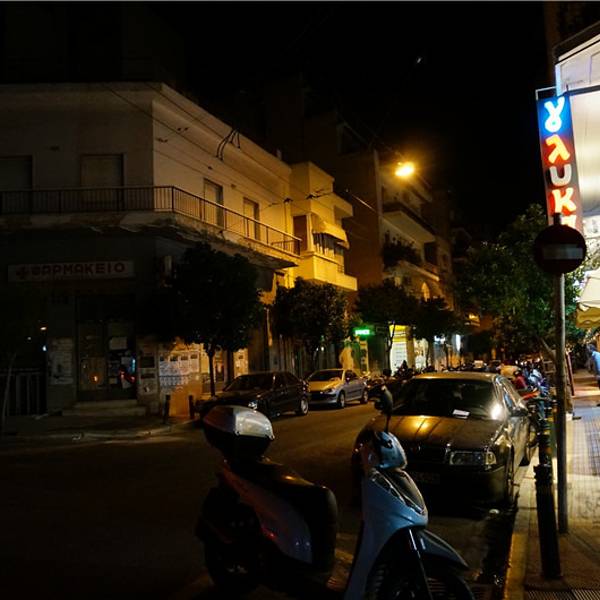 早上,这里是属于希腊人的,清静和悠闲。当地人到广场闲逛,喂喂广场上的鸽子、到跳蚤市场前的水果摊买买水果、到广场的拜占庭教堂前闲坐聊天。游客一般会在临近中午才来这里,游览广场附近的古市集。跳蚤市场里面是卖工艺品,游客购买居多。跳蚤市场前的水果摊,水果便宜又好吃,买了葡萄试试,又甜又大颗,才1欧1公斤。我们早上去满车的水果,不过没有买,晚上回到广场车子只剩下葡萄了,水果很畅销,建议大家喜欢就早点下手买。【晚上】