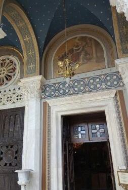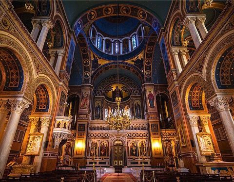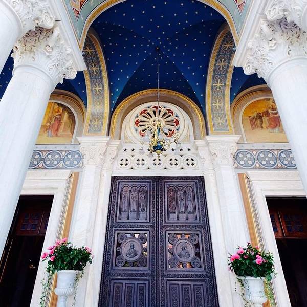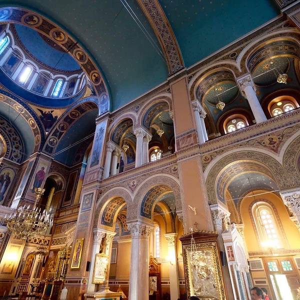 这是雅典的主要教堂,大主教服务的地方。教堂看起来很大,但没有很大的休息区。图像宏伟壮观,不断有游客访问。我们在一次婚礼中经过,里面到处是游客和庆祝婚礼的人们