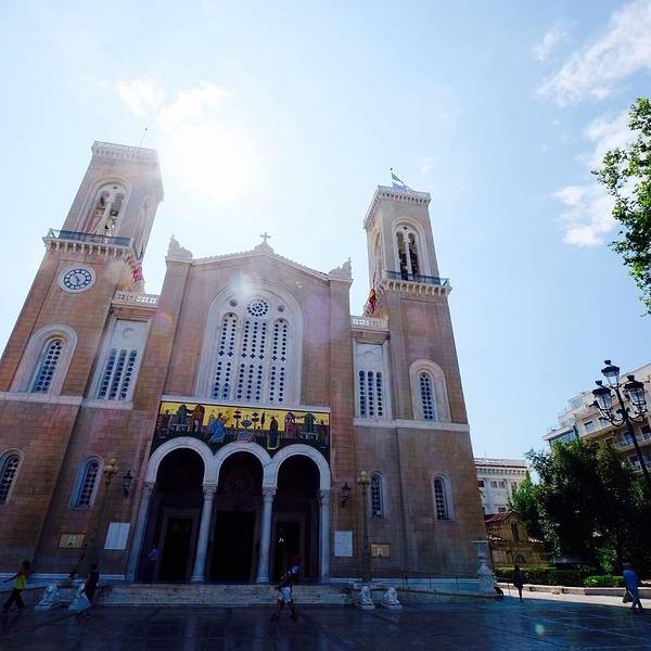 雅典大都市教堂于1842年开工建设,是雅典和全希腊主教座堂。教堂建设历时20年,使用来自72个拆除教堂的大理石建造而成教堂前几年一直在关闭维修,前几个月刚恢复开放,我们很幸运地参观了它。雅典大都市教堂位于雅典的历史中心,梅特洛波利斯大街,它是一个专门为圣母玛丽报喜的地方。大都会教堂的门前的的广场上站立着大主教Damaskinos大马士革诺的雕像.他是雅典在二站期间的大主教