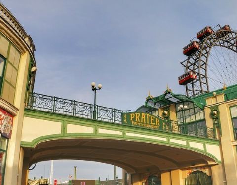 维也纳普拉特游乐场是全世界创建最早的一座游乐场,1766年奥地利皇帝约瑟夫二世宣布将维也纳普拉特皇家狩猎场对公众开放,由此这里成为了维也纳人休闲消遣的地方。随着一些游乐设施的建立,这里成为世界最早的大众游乐园。1837年为迎接世界博览会,游乐园中架起一座高达65.75米的摩天轮,乘坐摩天轮,维也纳市区与多瑙河美丽的风景尽收眼底,至今摩天轮依然在运转。由此,普拉特游乐场也成为维也纳市民生活除音乐之外的娱乐标志。