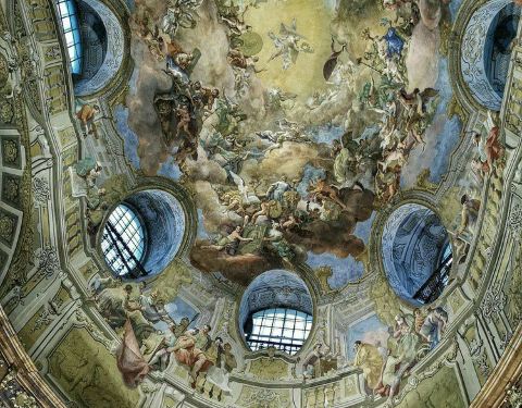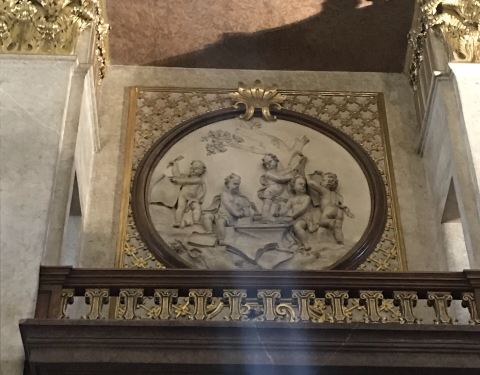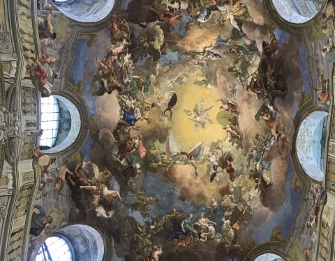 现在对外可以参观的其实也就是图书馆其中的一个厅 - 普隆克厅(Prunksaal)原本以为太晚进不去了,抱着侥幸的心态到了后才发现,周四,刚好开放到晚上9点,啊啊啊啊啊啊,赞上去二楼,就是这个大厅这是一座非常大气奢华的巴 洛克 艺术建筑。