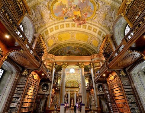 ...,里面的收藏品涵盖了孤本,手稿,图像,照片等等非常珍贵的文物,而且这个图书馆本身也是一座艺术品奥地利国家图书馆藏书达到740万册,是全国最大的图书馆,里面的收藏品涵盖了孤本,手稿,图像,照片等等非常珍贵的文物,而且这个图书馆本身也是一座艺术品。