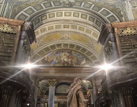 实用 ⭐️国立图书馆的参观和借阅是分开的,参观主要是state hall,入口在约瑟夫广场的那个门你看过哈利波特吗?霍格沃兹魔法学校的图书馆其实真的存在哦,就在奥地利的维也纳。 ⭐️这座号称世界最美图书馆由哈布斯堡家族创立,于1726年建成,1902年收归国有。奥地利国立图...你看过哈利波特吗?霍格沃兹魔法学校的图书馆其实真的存在哦,就在奥地利的维也纳。 ⭐️这座号称世界最美图书馆由哈布斯堡家族创立,于1726年建成,1902年收归国有。奥地利国立图书馆藏书240万卷,金碧辉煌的巴洛克式建筑让藏书显得格外珍贵。大厅中间为卡尔六世皇帝的等高全身雕像,穹顶上的壁画让人有种穿越到欧洲中世纪的感觉。看腻了欧洲大同小异的教堂,不妨来这里逛一逛,沉浸在知识的海洋中,图书馆不仅非常适合拍照同时还能了解相关的历史知识,其中还有莫扎特贝多芬很多珍贵的手写谱,拍照学习一举两得,可以说是相当划算啦。