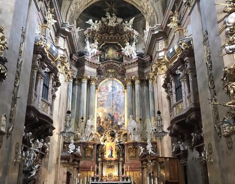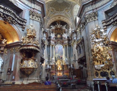 ...式的史蒂芬大教堂不同,这座教堂是巴洛克风格,教堂非常有历史感,内部装潢非常漂亮不像外观那么低调教堂位于维也纳市中心格拉本大街的一侧,紧邻黑死病纪念柱,和不远处哥特式的史蒂芬大教堂不同,这座教堂是巴洛克风格,教堂非常有历史感,内部装潢非常漂亮不像外观那么低调
