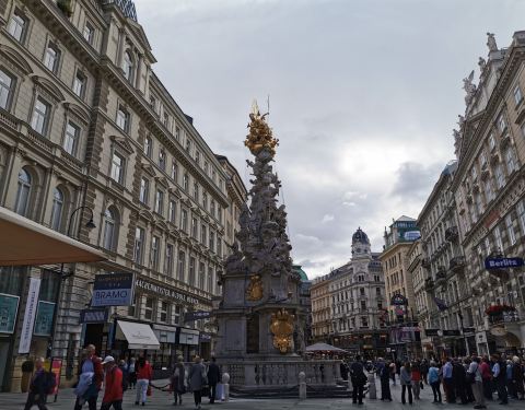 瞻仰巴洛克式黑死病纪念柱,缅怀那些受难者。