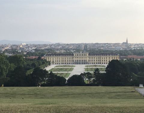 因为地方比较高,所以居高临下、凭栏远眺地可以看到整个维也纳的城市风景这里是美泉宫的制高点。要走一个长长的上坡才能到这个地方,还有点儿累人。因为地方比较高,所以居高临下、凭栏远眺地可以看到整个维也纳的城市风景。