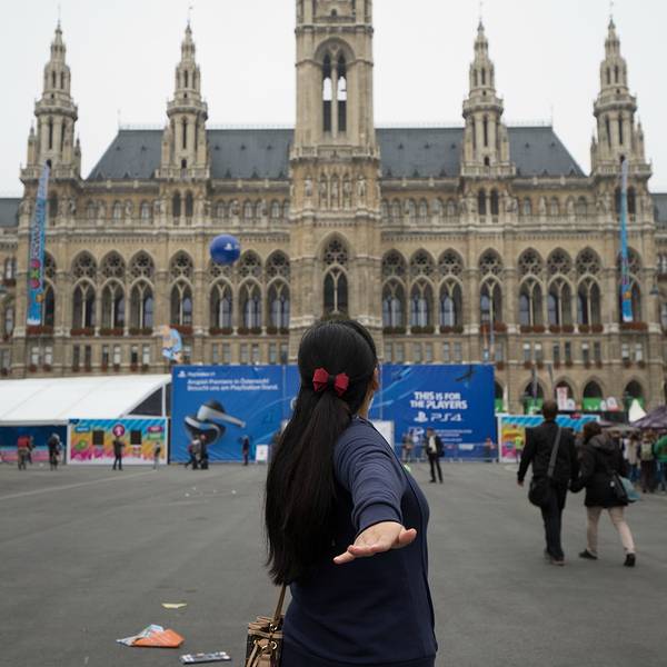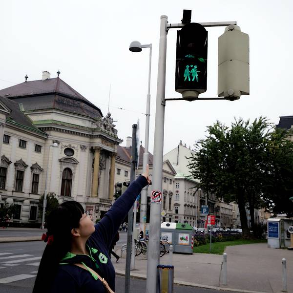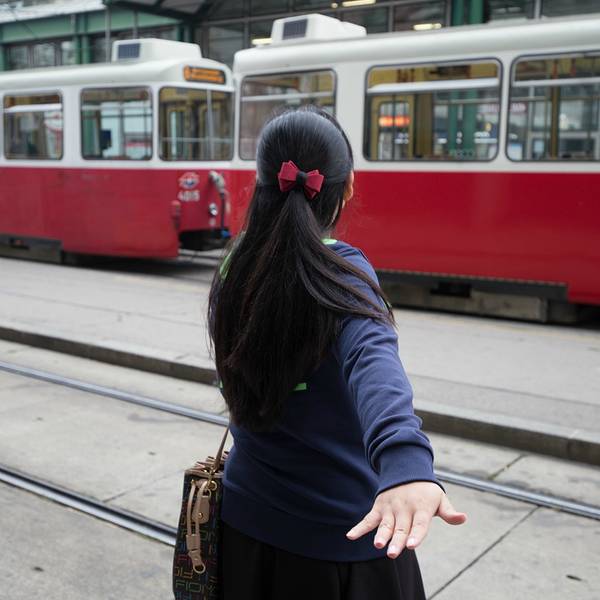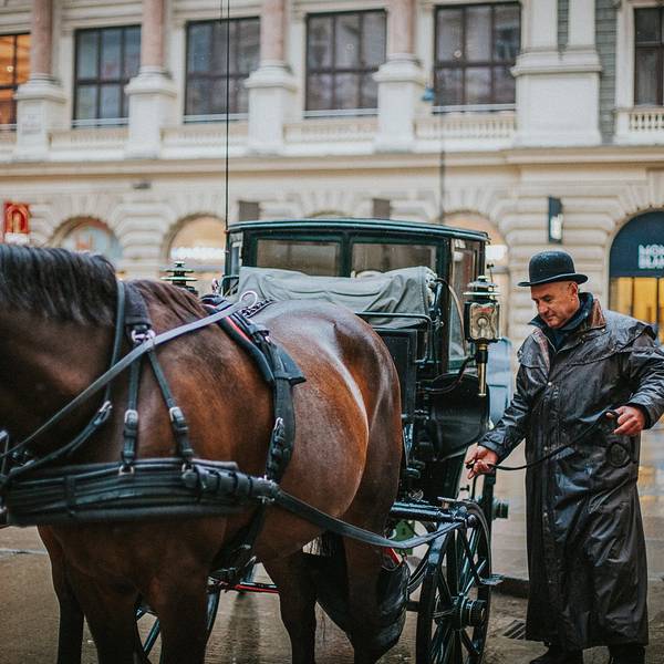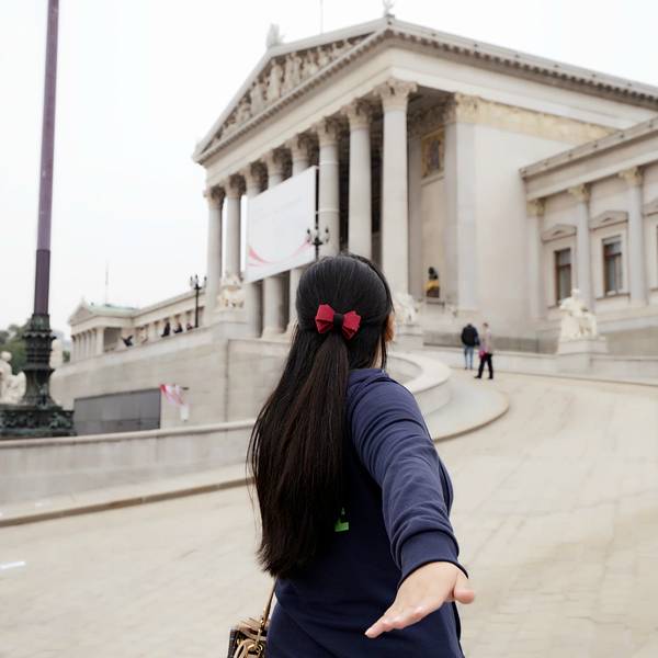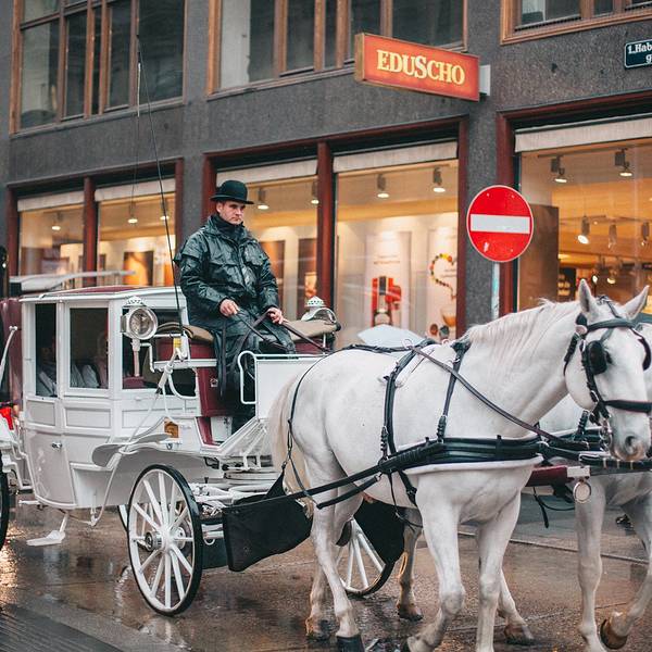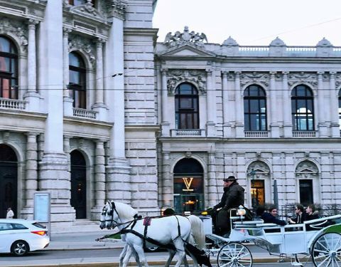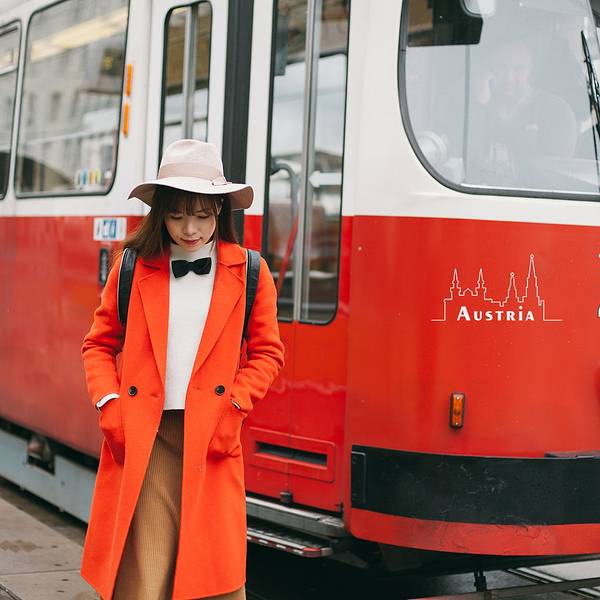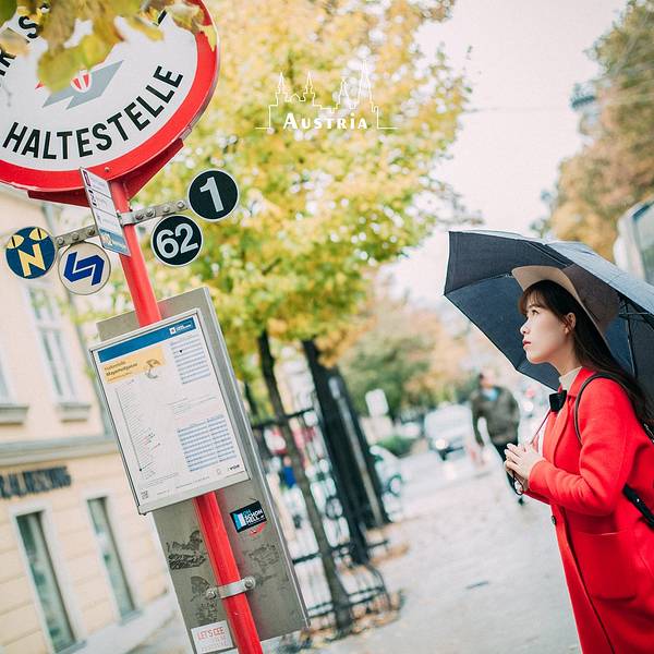 走出教堂,雨势不减。雨天的维也纳,街道上依然可以频繁的见到马车的身影,这里的马夫都会给马匹配上相应颜色的车,车身相对萨尔茨堡的要小一些,也更适合在这些狭窄的街道中行走。在维也纳城市中心地图上有一条由林荫大道构成的一个4公里长的圈叫环城大道(Ringstrasse),又名戒指路。环城大道总长4公里,环绕着维也纳老城,大道内是内城,大道外是外城。环城大道绿树成荫,大街两旁云集众多风格的建筑物。这些建筑大都建于1861年至1888年之间,集中体现了19世纪后期城市建筑艺术的辉煌成就。国家歌剧院、维也纳市政厅、沃蒂夫教堂、维也纳大学等著名景点都在这条路上。(地图来自网络,侵删)游览环城大道也是维也纳旅行不可错过的体验,你可以选择步行或是乘坐有轨电车观光,1路和2路均围着维也纳市环城大道运行,但这两路车的运行范围非常广,乘坐时最好打开谷歌地图查看自己的位置,免得离开“戒指圈”,比较保险的路线是乘坐1路电车(开往Prater-Hauptalle方向)从Oper站到Schewedenplatz站,然后换乘2路电车(开往Ottakring方向)从Schwedenplatz站返回Oper站。想要乘坐有轨电车的朋友建议购买维也纳24小时交通票或是多日的交通票,你可以随心所欲的上下车,大部分站台上会有电子屏幕显示各线路电车的行进情况。关于交通票的详细介绍请参考游记后文的交通攻略。除了公共电车,环城大道还有专门的景观电车Vienna Ring Tram,和红色的公共电车不同,它的车身是明黄色,非常醒目,当然,价格也不便宜。它不在交通卡的涵盖范围内,单程车费10欧,全程大约半小时,车上配有耳机,可以听沿途各个著名景点的介绍。湿漉漉的下雨天,车厢里只有寥寥数个乘客,大家都漫不经心的坐在靠窗的位置凝视着窗外,似乎没有人愿意离开这个温暖的空间,雨滴打在车窗上,模糊了一路的风景,却有一种别样的美。首尾相连的电车有序的在固定轨道上滑行,坐在最后一排回看倒行的维也纳,仿佛时光穿梭一般,整个城市似乎回到了它最初的样子,而我们就这样漫无目的地在这座城市中游荡着。大概是因为舍不得离开温暖的车厢,我们在电车上坐了尽一个小时才回过神来,打开手机地图,发现自己早已远离维也纳市区,路上的风景也由巴洛克建筑变为了普通的民居,明知自己已迷路,内心倒也不慌张,大不了原路返回嘛。观察了一下周围才意识到这里是单行道,返回的车并没有那么好找,搜罗了一下发现还有铁道交通可选,那就索性换种交通方式回去吧。很容易的找到了一个较大型的车站,等来的却不是我以为的地铁或是轻轨,而是快速火车!不知道它是否会回到维也纳市区还是会带我们去到更偏远的地方,面对匆匆上车的乘客,我们没有再去询问,因为每个人脸上冷冰冰的表情让人望而生畏。拥簇的人群中,这回眸的一笑让原本阴沉的空气瞬间温暖起来,身心的冰冷也得到了治愈。