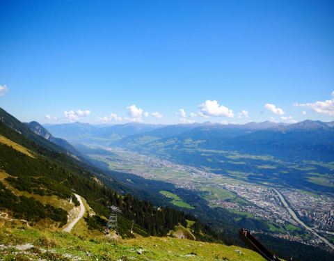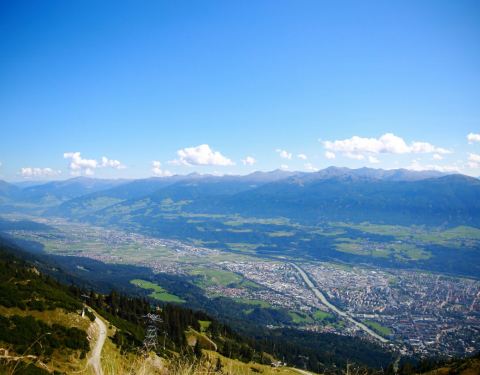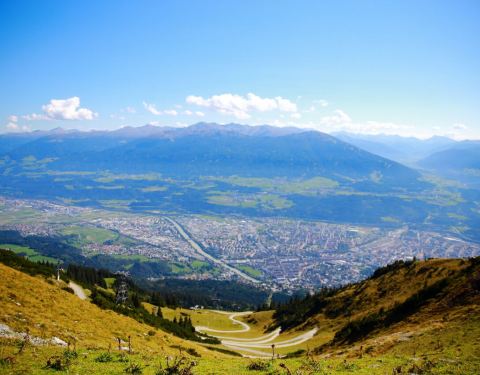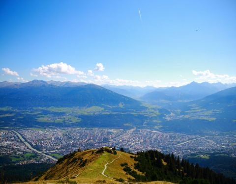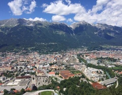曾经两届冬奥会开幕式的举办场所,在山顶鸟瞰因斯布鲁克全景。