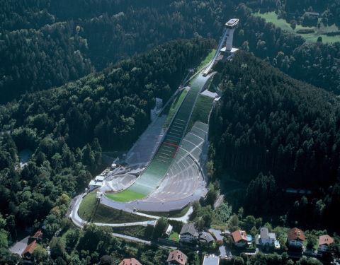 伊格尔斯山曾于1964年和1976年举办过两次冬季奥运会,山顶的滑雪跳台根据伦敦建筑师查拉·哈迪德(Zaha Hadid)的设计改建,设施齐全,风格独特。游客可步行上山游览,也可乘观光电梯到达滑雪跳台,这里是两届奥运会举行开幕式的地方,观众台可容纳约5万名观众,跳台的终点是点燃奥运会圣火的圣坛,旁边的铜牌记录着所有获奖者的名字。山顶还有咖啡馆和餐厅可供游人休憩,从这里可以鸟瞰茵斯布鲁克全景,还可眺望阿饵卑斯山北麓。此外,每年一度的四项障碍跳雪巡回赛和马特跳雪比赛等体育盛事也颇为壮观。