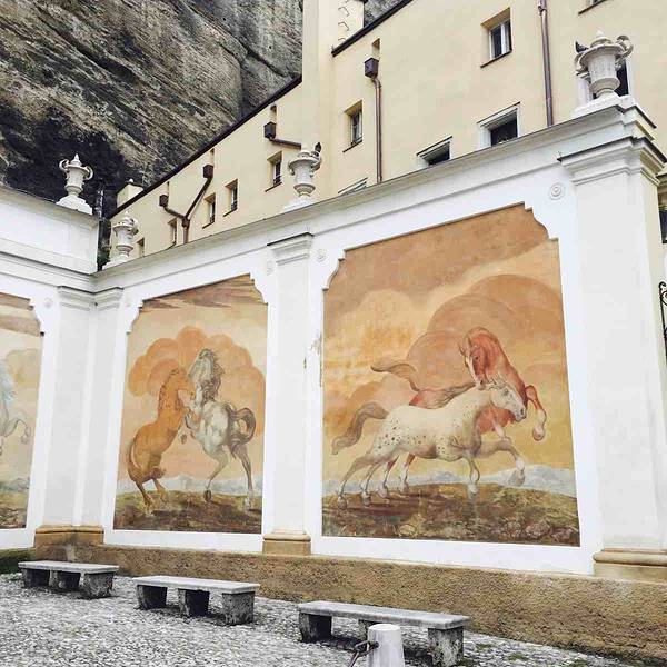古代的洗马池是让马饮水休息的地方,洗马池位于萨尔茨堡老城西南面的山崖下,从粮食胡同穿过中心广场就可以看到一座栩栩如生的马匹雕塑和后面的壁画,很是壮观。