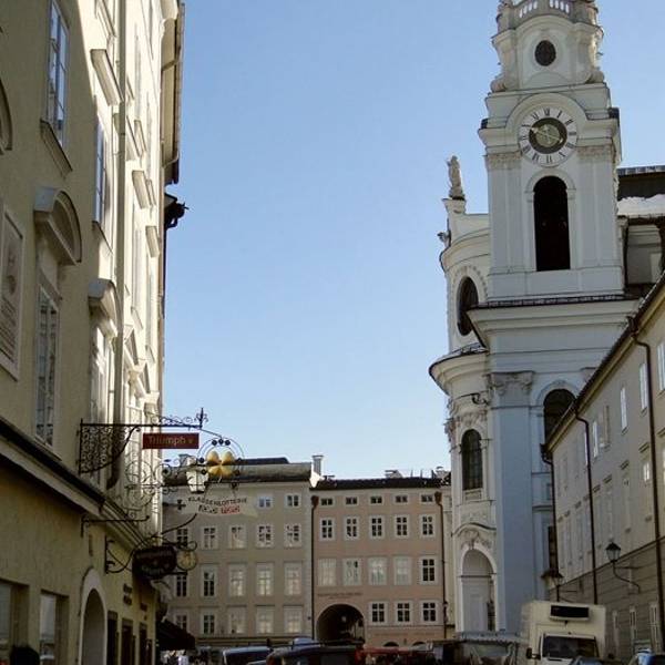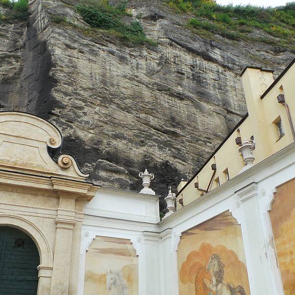 广场一边是Pferdeschwemme(洗马池),紧靠在Monchsberg(僧侣山)山脚,整...