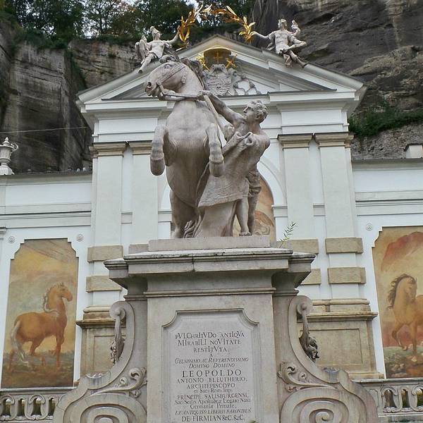 萨尔茨堡的洗马池建于1700年,起初是当时的马厩建造的蓄水池,故而得名,中间有尊叫“驯马者”的雕像,看上去栩栩如生,将“马欲腾空”的形态展现得相当逼真,很值得瞧瞧。
