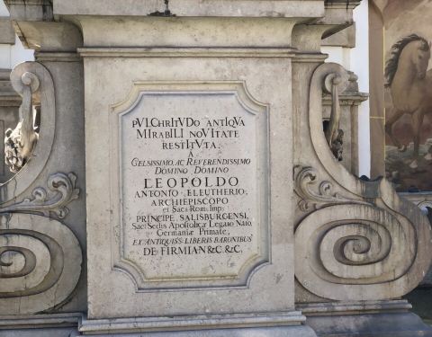 【环境评价】建于1693年,是当时皇家马厩建筑的一部分,也是显示权贵们门面的东西,并不是“洗马”的地方。水池中间的雕塑叫驯马者(Horse Tamer)。1732年大主教Firmian重修了这个马厩池及雕塑,加了围栏等,是非常华美的巴洛克建筑。马池离开主教宫单独存在着,觉得有点奇怪,可后来知道原来现在的节庆剧场所在地有马棚,因此马池的位置没什么不可思议。马池中有马的塑像,后面壁上有各种马的画,爱马之人应该会很喜欢这个地方。