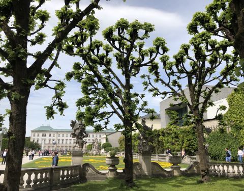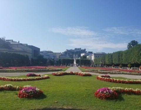 米拉贝尔宫可能是萨尔茨堡最有名和最漂亮的园林景观了。花园不是很大,但是还是很漂亮的米拉贝尔宫可能是萨尔茨堡最有名和最漂亮的园林景观了。花园不是很大,但是还是很漂亮的。我们一九年四月份去的那一天,有人在那里举行一个简单的婚礼活动。从米拉贝尔宫可以看到萨尔茨堡的城堡。