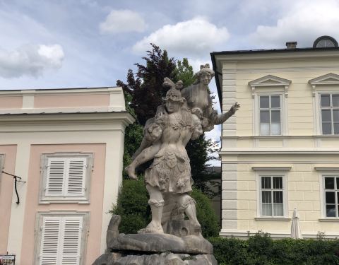 这是位于米拉贝尔宫门对面的牛的雕像,上面画的就是《音乐之声》的场景~【关于路线】米拉贝尔宫位于老城,距离萨尔茨堡大教堂不远,也可以远眺城堡,所以建议参观完花园后,可以步行前往主教广场,沿途会看到非常好的街景。【关于参观时间】参观米兰贝尔宫所花费的时间不长,但是因为这里几乎是每个来萨尔茨堡的旅游团必去的景点,所以游客非常多。尽量避开高峰期前往吧,最好上午早一点去~另外,冬季由于天气原因,有些地方是不开放的,所以如果不想留有遗憾,也尽量避开冬天前往吧~建议5 – 7月会是一个不错的选择,天气回暖,正值花期,花园会非常漂亮。