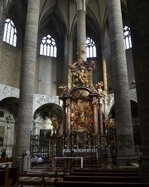 这座教堂非常有趣,因为能在里面找到很多种风格:罗马式的外墙,哥特式的钟楼,巴洛克式的祭坛,哥特...