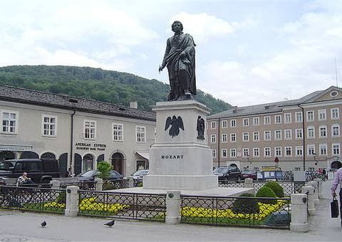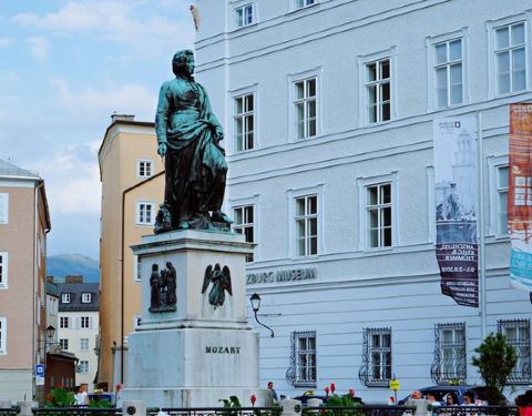 先是热爱莫扎特,然后才是爱萨尔茨堡,虽然如今游人挤满了萨尔茨堡,但是我还是很愿意去看看萨尔茨堡,想象神童莫扎特如何走过那些漂亮的小巷。 莫扎特广场是奥地利萨尔茨堡古城区一个有代表性的矩形广场,开辟于1588年。广场上有莫扎特的雕像,这里和所在的萨尔茨堡老城一同成为了世界文化遗产的一部分。 莫扎特雕像的附近经常有街头艺人演出,如果时间充裕,可以找个咖啡厅坐下来感受一下。