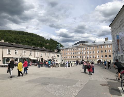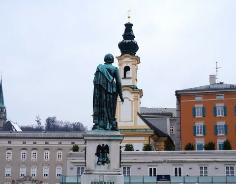 萨尔茨堡老城区有代表性的广场,莫扎特雕塑是它的标志。