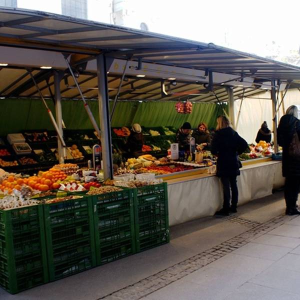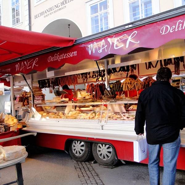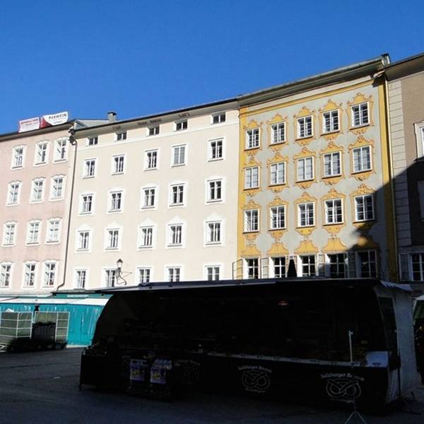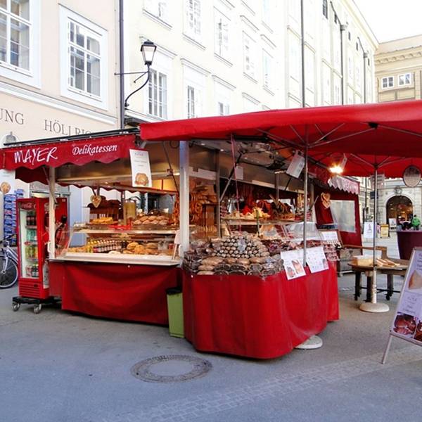 来到大学教堂前的Universitatsplatz(大学广场),这里每个周末都会有跳蚤市场,不过现在已演变成主要贩卖莫扎特纪念品的小市场。