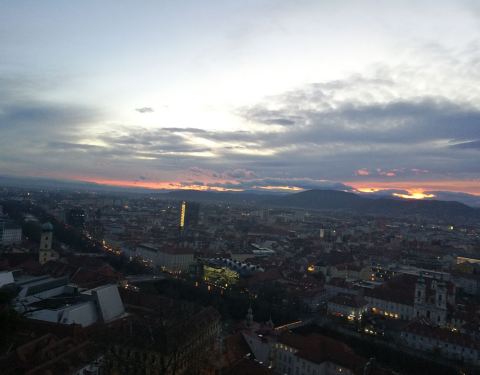...格拉茨全城 山上有个中国亭子 建的不伦不类的 越南风格吧 圣诞节期间 山上有圣诞市场 非常热闹城堡山有好多条小路都可以走上来 也可以选择坐缆车上下山 山不高 但是可以鸟瞰格拉茨全城 山上有个中国亭子 建的不伦不类的 越南风格吧 圣诞节期间 山上有圣诞市场 非常热闹