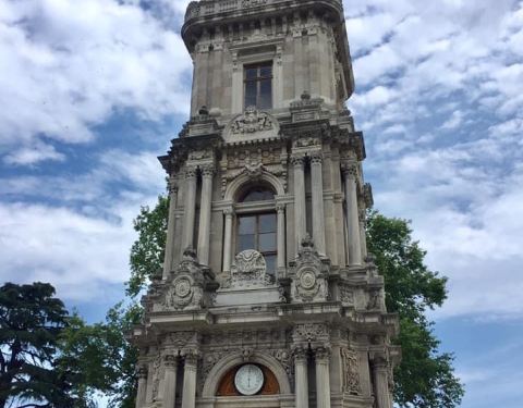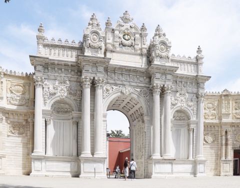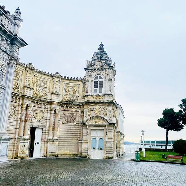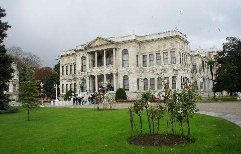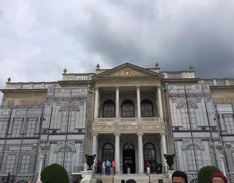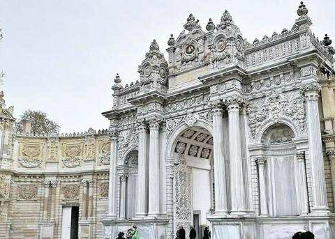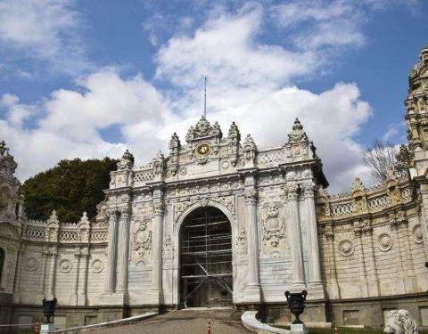 多尔玛巴赫切宫位于伊斯坦布尔的新城区,又被俗称为奥斯曼帝国新王宫。宫殿高大宽广,气势恢弘,隐约透露着曾经盛极一时的奥斯曼帝国的辉煌与富庶。“多尔玛巴赫切”的土耳其语意为填土兴建的庭院。这座宫殿于19世纪中叶,在原有的港口结构上建起的,它地处水滨,风景秀丽,依附在博斯普鲁斯海峡的欧洲沿岸上,是奥斯曼王朝后六位苏丹执政之所。宫殿成熟的建筑水平使得宫殿围墙全长达600米,内墙则铺满金箔,主体采用白色大理石及埃及雪花石打造。通过一扇装饰华丽的大门,就进入了花园环绕的王宫,花园里的花草树木都得到精心的照料,园内还矗立着一座巴洛克式的钟塔,根据推测这座钟塔当年还兼具警戒塔的作用。由于宫殿目前还为政府机关所用,因此门口依然有卫兵站岗,门禁森严,纹丝不动的卫兵也成为这里一道风景线。跟随导游参观宫殿宫殿主要由两大部分组成,分别为礼仪宫(Selamlık)、后宫和嫔妃院(Haremlik),共有285个房间、43间厅堂和6个土耳其浴室,堪称美仑美奂的杰作。游览时你必须在导游的带领下参观这两个地方,不能单独走动。游览一般分为两条线路,导游解说都为英语或土耳其语,基本上每条线路的游览时间在30-40分钟左右。如果你时间上很紧建议仅游览礼仪宫。礼仪宫与水晶阶梯从宫殿正门进入后,首先参观的就是礼仪宫,这里有接待各国使节的迎宾厅、候客室、与政府要员开会密谈的房间、浴室和儿童房等。另外,土耳其地毯、水晶烛台、象牙、黄金以及各国赠送的装饰品也值得仔细观赏。特别要一提的是这里的楼梯厅,支撑楼梯扶手的支柱是用水晶打造的,故称为“水晶阶梯”。阳光从玻璃帷幕顶棚照入室内时,就会呈现光彩夺目的景象。由顶棚垂悬而下的水晶灯重约2.5吨,为法国帕卡拉产的水晶。苏丹的加冕仪式都在这里举行,你可以看到用黄金镶成的苏丹的宝座。后宫与嫔妃院出了礼仪宫之后,占据宫殿北边大半部的就是后宫了,这里是除了苏丹和王子外,其他男人不得进入的地方。这个后宫与之前的帝王厅只有一道铁门之隔,这里根据嫔妃们的喜好装饰成不同样子的房间,洋溢着浓郁的西式风格。比如黄厅就是后宫女眷们开会的场所,这里是后宫大的一个房间。在寝宫的后面设有儿童房间,每样东西都小巧玲珑,造型相当可爱。另外,这里还有土耳其国父阿塔土耳克临终的房间,床上盖着丝绸做的土耳其国旗,墙上的时钟则永远停留在他逝世的时间9点零5分。其他看点参观完以上两条线路之后,有时间还可以去水晶宫和钟表馆看看。宫殿沿着海峡还有一条长160米的码头,据传昔日都是以船只为进出此宫殿的主要工具,当然目前已搁置不用。你可以站在这里远眺一下对岸秀美的风景并合影留念。此外,花园内钟塔的旁边还有一个露天的咖啡馆,走累的话可以坐下来喝杯咖啡,看看蓝天,吹吹海风。