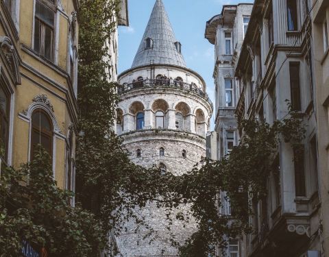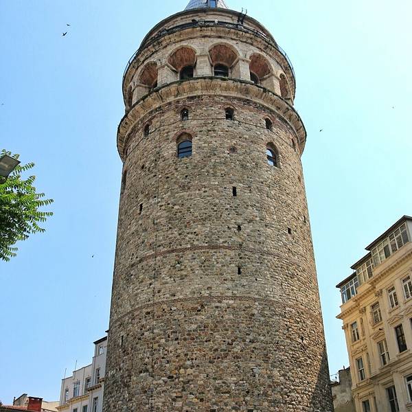 加拉达石塔是伊斯坦布尔新城的一个地标,耸立在金角湾上。登上塔顶,你可以远眺博斯普鲁斯海峡和金角湾。而在夜晚,人们还可以在塔顶餐厅、酒吧尽情享乐。塔的历史该塔是拜占庭皇帝阿纳斯塔修斯在507年修建的灯塔,初用木头建造,后来在被焚毁,直至1348年由热那亚人用石料重建复生,成为当时堡垒的高点。之后又经历多次重修,在数次地震和战争劫难中,这座塔都安然无恙。历经沧桑的加拉太塔还曾身兼数职,包括警卫塔、监狱、天文台等。从塔顶鸟瞰伊斯坦布尔如今,这座中世纪石塔高9层、66.9米,游客可以乘坐电梯直至塔顶,360度观看蔚为壮观的伊斯坦布尔城景和博斯普鲁斯海峡的风光。到了傍晚,这里更是拍摄日落美景的地点。塔上的夜生活塔的上层设有餐厅和咖啡厅,甚至还有夜总会,营业至深夜,届时可以欣赏到东方的肚皮舞、午夜表演等。