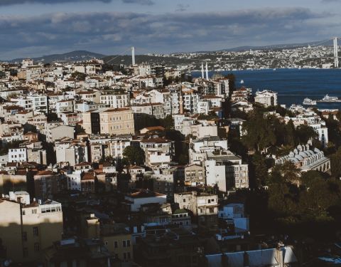 从中世纪古塔顶端360度俯瞰城市及海峡景观,日落时分尤其漂亮。