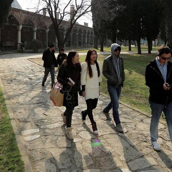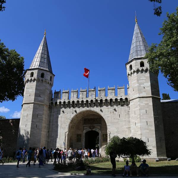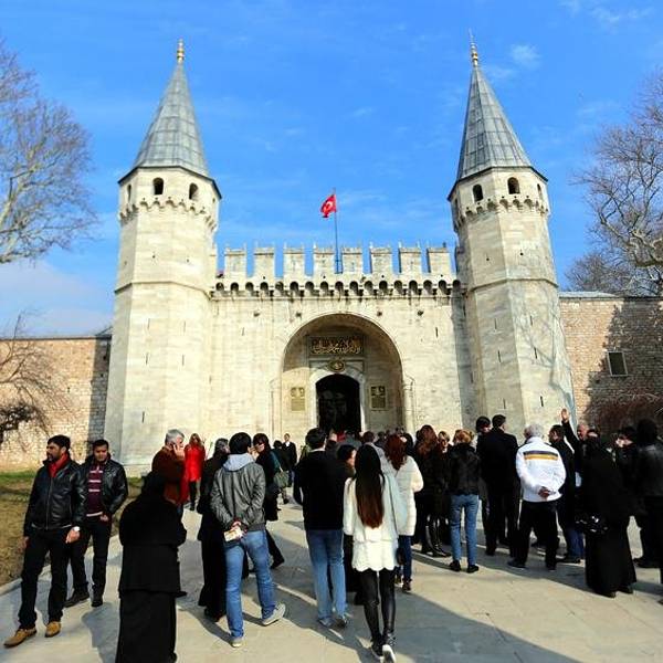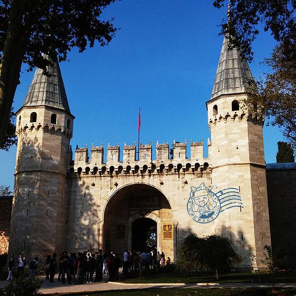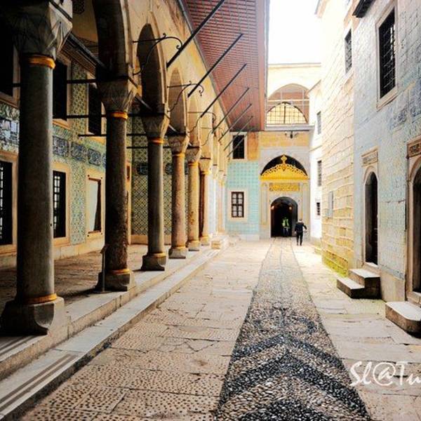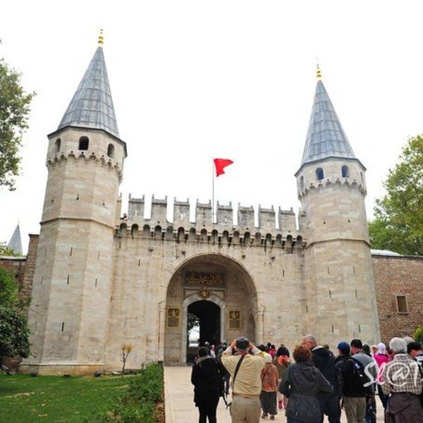到达老皇宫门口,虽然已有部分旅行团到达,但人仍不算很多,开门时间一到便赶紧进入,这...从sirkeci火车站附近的住处,走路到老皇宫并不远,大概10多分钟的步行时间,希望在开门之前就到达,以免之后排队的人群。