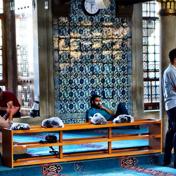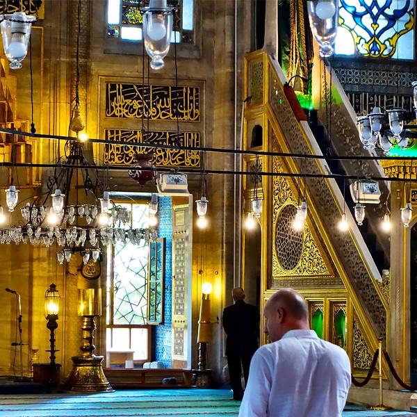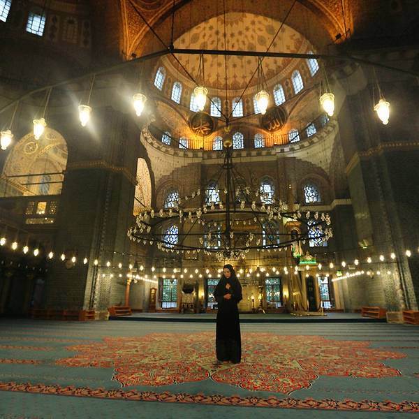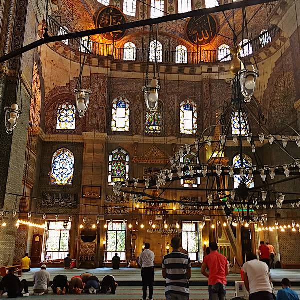 女生进来参观一定要用围巾/头巾把头和头发包好。鞋子要事先脱好放在大门外坐T1回到Eminönü站,是耶尼清真寺、香料市场和码头。 保有鄂图曼样式的耶尼清真寺,侧旁有着高耸的两座拜塔,中庭有优美的水泉,内部是宽阔的圆顶和色彩缤纷的瓷砖。游客被安排在一个专供游客进出的口,跟着指...坐T1回到Eminönü站,是耶尼清真寺、香料市场和码头。 保有鄂图曼样式的耶尼清真寺,侧旁有着高耸的两座拜塔,中庭有优美的水泉,内部是宽阔的圆顶和色彩缤纷的瓷砖。游客被安排在一个专供游客进出的口,跟着指示牌走就可以了,如果女性衣着不符合要求,可以租借到长袍。这里内部相对清静,但是只有一小部分区域被圈起来留给游客,大多地方只对朝拜者开放。女生进来参观一定要用围巾/头巾把头和头发包好。只穿背心男女都不允许,裤子或长裙要全长,九分裤或开衩裙不可以。鞋子要事先脱好放在大门外。有信仰与否对人的精神状态还是很有影响的,无论你选择信什么 展开