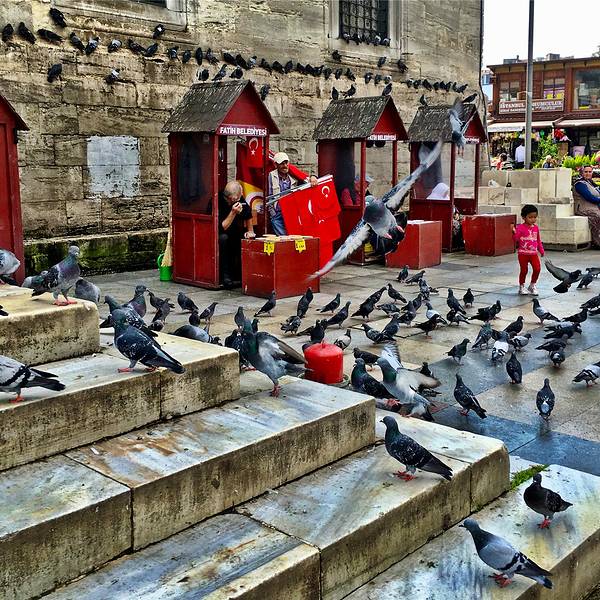 鸽子们喜欢围着清真寺盘旋~和蓝色清真寺截然不同的色调,也没有那么多的游客耶尼清真寺,就在博斯普鲁斯海峡附近鸽子们喜欢围着清真寺盘旋~和蓝色清真寺截然不同的色调,也没有那么多的游客