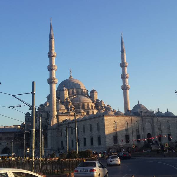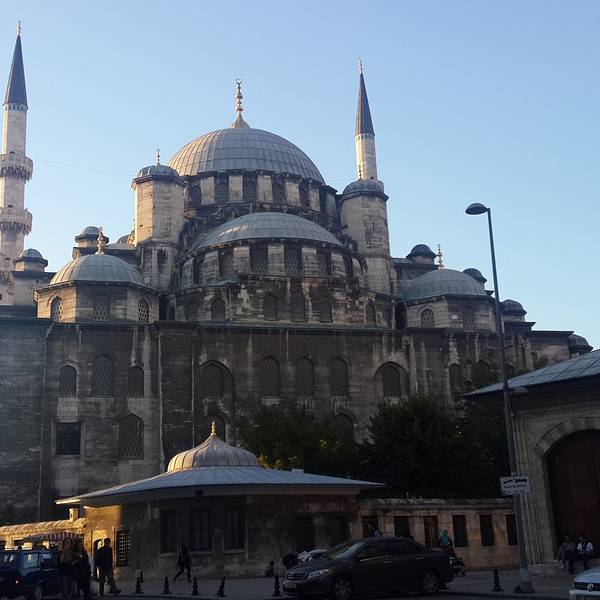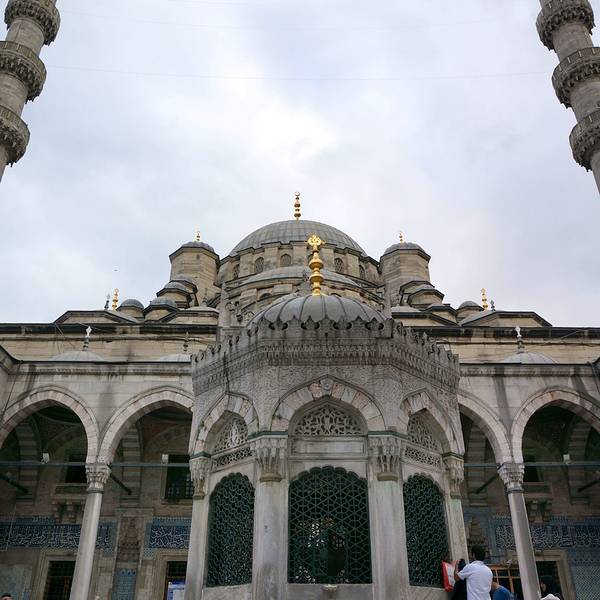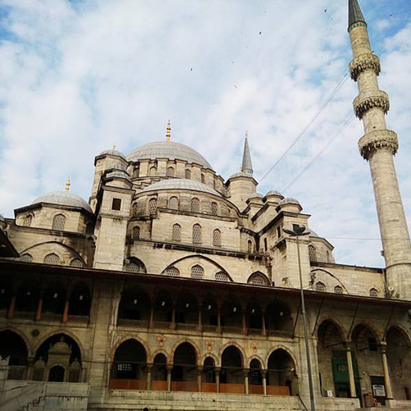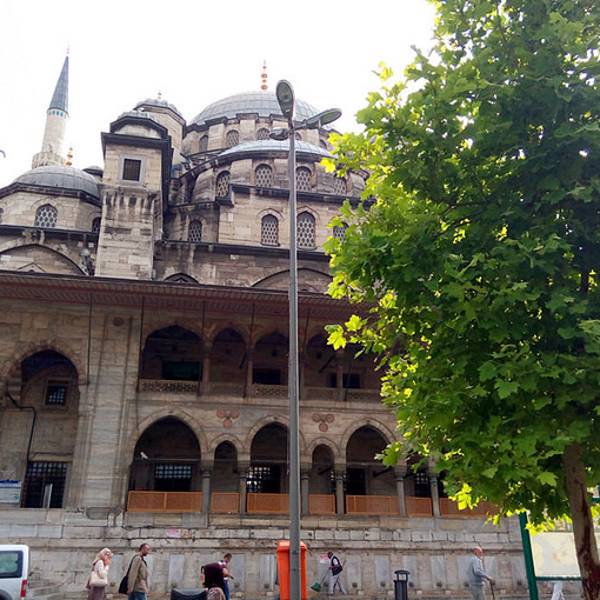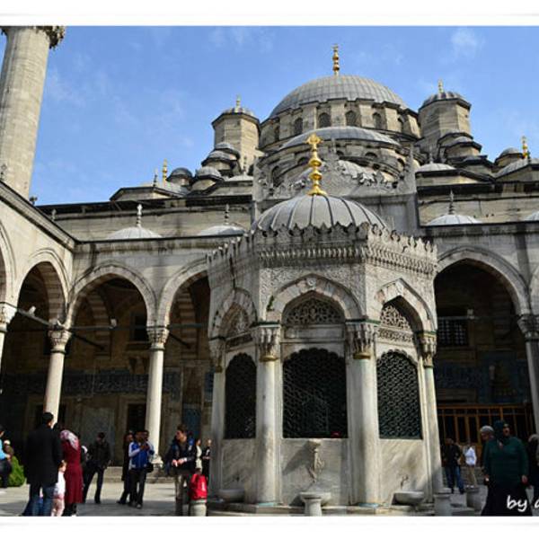 耶尼清真寺人也非常多,不管是游人还是礼拜者,并不像传说中的游人不多,大家大多都坐在清真寺前的石...耶尼清真寺位于Eminonu电车站旁,前往耶尼清真寺还可路过加拉太大桥,可以看见岸边和桥上的无数钓鱼人,变成了一道景观,听说在那边可以吃到特色的“烤鱼包”,不过由于时间,我们只是匆匆经过。