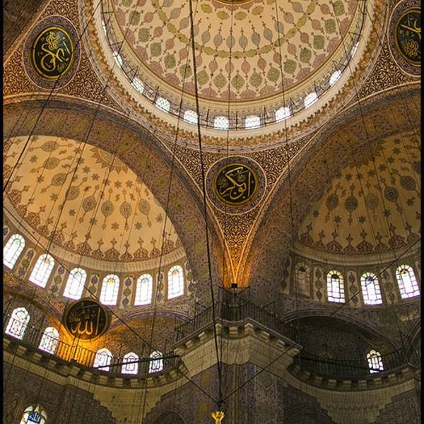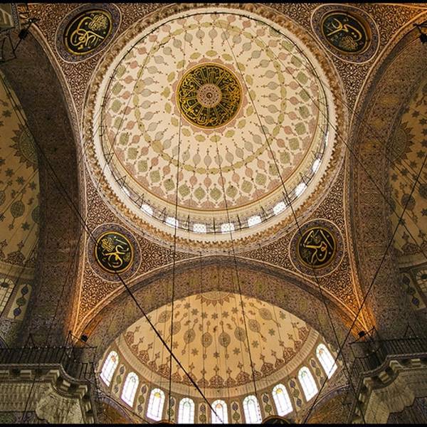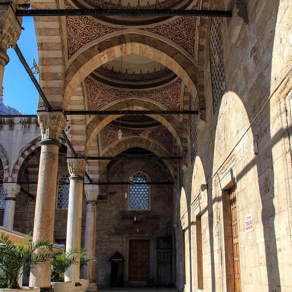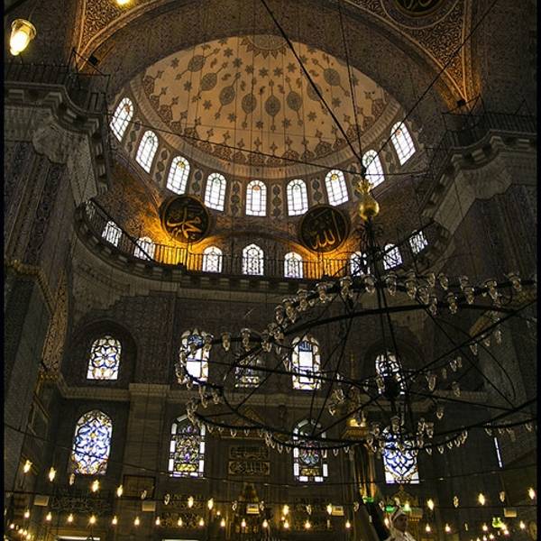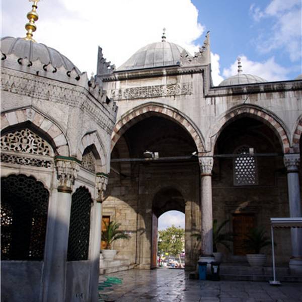 ...旁有着高耸的两座拜塔,中庭有一优美的水泉,内部宽阔的圆顶和色彩缤纷的瓷砖,使整座清真寺非常华丽耶尼清真寺于1597年开始动工,中途历尽风雨,甚至曾经停工,最终在1663年完成。