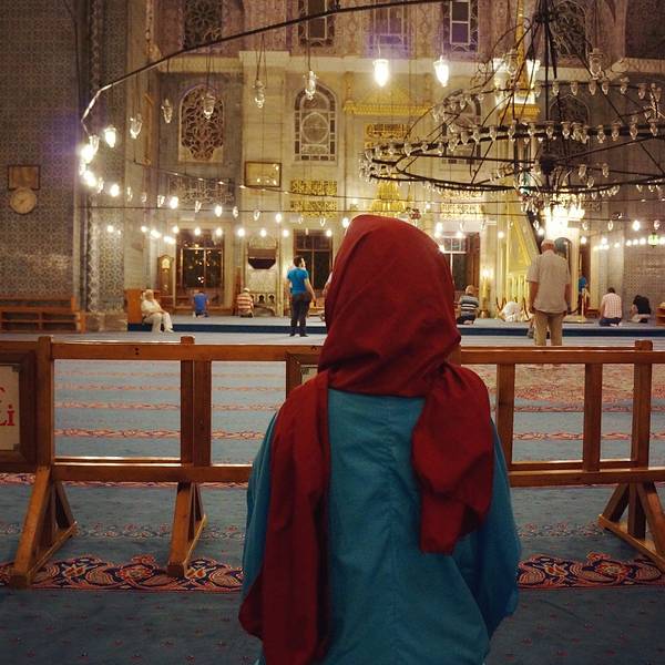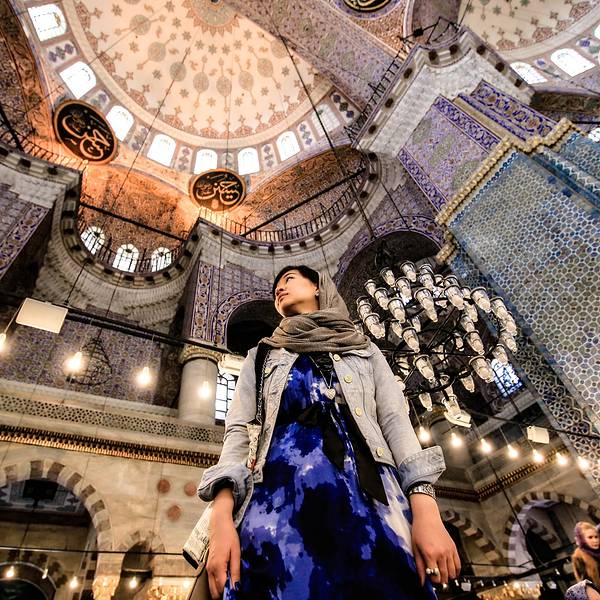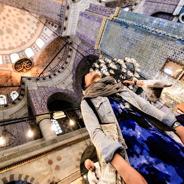 清真寺的里面非常的漂亮,我们用头巾把脑袋给抱住了。我们只是在安静的拍照。拱顶上绘画了很多的图案1个小时的游船所有人冷到不行,我们下了船,过一个马路就是香料集市Misir Carsisi和Yeni Mosque清真寺