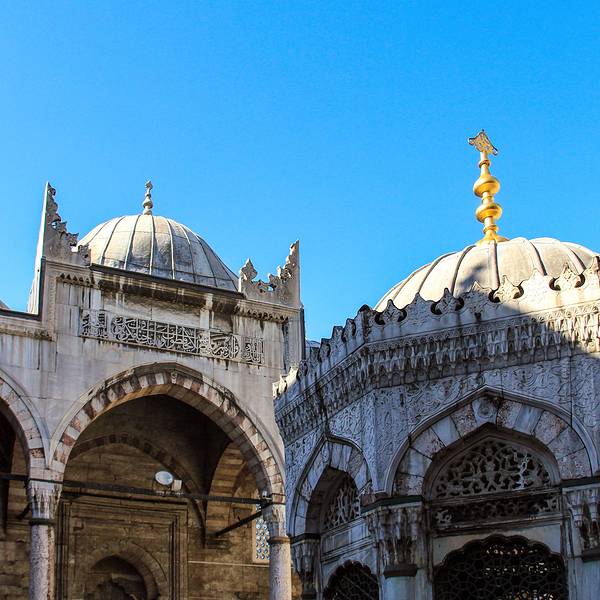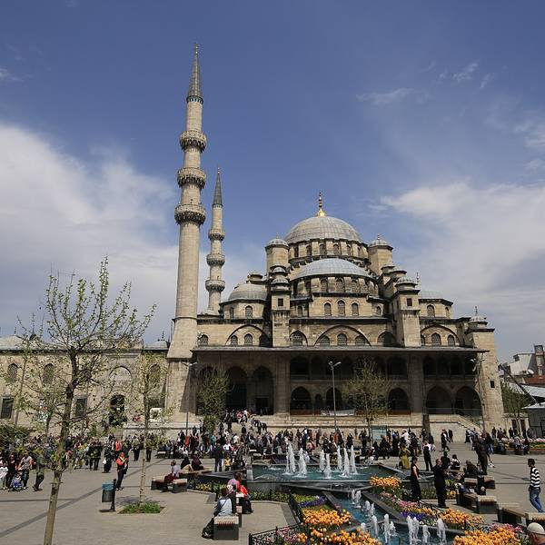 保有鄂图曼样式的耶尼清真寺,侧旁有着高耸的两座拜塔,中庭有一优美的水泉,内部宽阔的圆顶和色彩缤纷的瓷砖,使整座清真寺非常华...耶尼清真寺于1597年开始动工,中途历尽风雨,甚至曾经停工,最终在1663年完成。