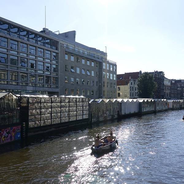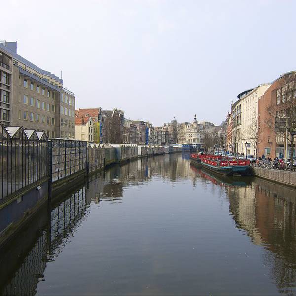 从铸币广场(Muntplein) 出发,沿着辛格运河(Singel)南岸边向西走就到,步行约100 米。