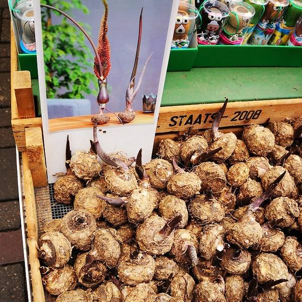 我买了一包郁金香球茎,花了四欧。问了老板,带回中国可以吗。老板说中国没问题。就当做送给妈妈的礼物,她的阳台上多了几颗荷兰郁金香。