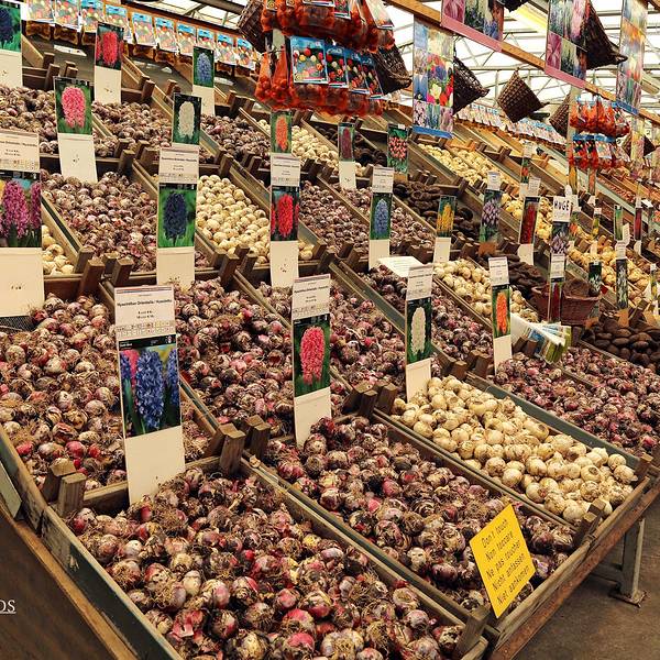 - 商铺里挂满了花种、球茎、鲜花等各种纪念品。花市商铺。冰箱贴和球茎是游客比较喜爱的纪念品。购买鲜花的人