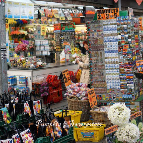 运河上的鲜花市场,三包郁金香花种EUR 10从酒店出发步行前往水坝广场时沿途走过的那些小小的商店街。