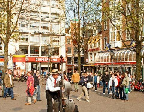 莱顿广场为阿姆斯特丹享受夜生活较热闹的中心之一,白天,夜晚光顾会有不一样的风情。 广场位于荷兰阿姆斯特丹市中心,Grachtengordel区的西南侧,紧靠辛厄尔运河的东北部。过去莱顿广场是通往莱顿马车道的起点,现今很合适做观光的根据地,多条交通线的乘车点就在此处。附近也有很多娱乐休闲场所值得一逛。 白天,可以在广场附近林立的咖啡馆或餐厅,找个惬意的露天位悠闲的放松一个下午。临近广场的剧院区你可以找到各国料理,从速食到慢食,从简餐到正餐,从素食到肉类,只要你胃口好,可以逛一路吃一路。要买伴手礼,可逛逛各种特色商店,当地的木鞋纪念品店,明信片,钥匙圈等纪念品店在这里都可以找到。 夜晚,莱顿广场则更富魅力,酒吧,餐厅,剧院的灯光,透着一种诱人的迷离感。去剧院看一演出,或是去酒吧狂欢的较好时候。
