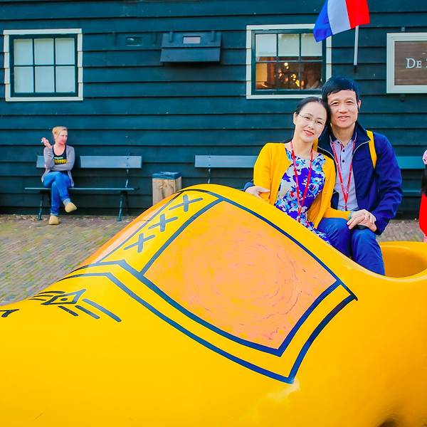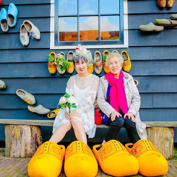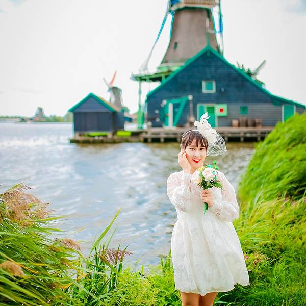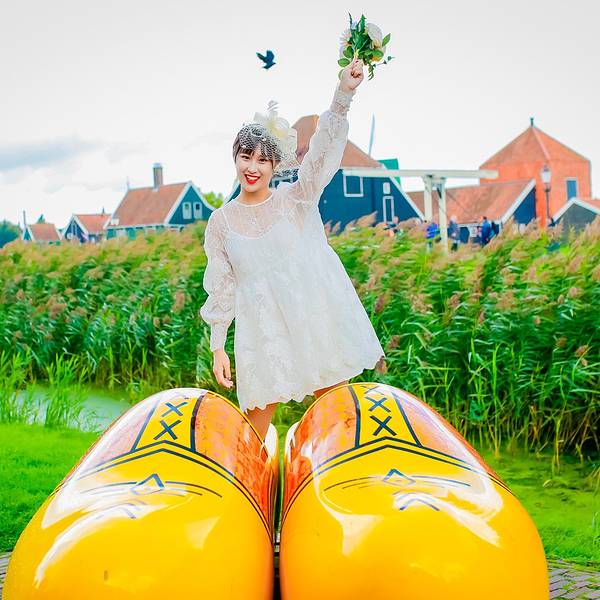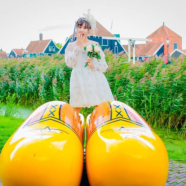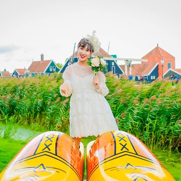 金骆驼 如今,虽然荷兰木鞋的实用价值大减,很少有人穿了,但观光客仍十分钟爱它,成了必购的纪念品~结束了上午国立博物馆的参观,我们继续乘坐维京游轮的巴士前往下一站:桑斯安斯风车村~桑斯安斯风车村位于阿姆斯特丹北方15公里,这里古老的建筑生动描绘了17、18世纪的荷兰生活。在桑斯安斯风车村里,有真实的房...结束了上午国立博物馆的参观,我们继续乘坐维京游轮的巴士前往下一站:桑斯安斯风车村~桑斯安斯风车村位于阿姆斯特丹北方15公里,这里古老的建筑生动描绘了17、18世纪的荷兰生活。在桑斯安斯风车村里,有真实的房子,古老的造船厂,制作木鞋的表演,还有风车……这里是有居民居住、开放式的博物馆。人们常把荷兰称为“风车之国”,而它真正的国名叫“尼德兰”。“尼德”是低的意思,“兰”是土地,合起来称为“低洼之国”。正因为荷兰低洼的地势,加上一年四季盛吹西风和典型海洋性气候带来的海陆风,给缺乏水力、动力资源的荷兰,提供了利用风力的优厚补偿。“荷兰三宝”中的另一样:木鞋,也和风车一样,是荷兰人与大自然的搏斗中适应地理环境而生的产物。正因为荷兰是“低洼之国”,几乎一半的土地浸泡在水中,促使荷兰人在500多年前发明了木鞋。木鞋是荷兰最具民族特色的工艺品,也是民族风俗文化的缩影。如今,虽然荷兰木鞋的实用价值大减,很少有人穿了,但观光客仍十分钟爱它,成了必购的纪念品~因为木鞋的造型很可爱,整个样子像一艘小船,所以荷兰人舍不得把它扔掉,有时把它做成装饰品,还有时则充当花瓶利用~趁着导游带领大家走进木鞋博物馆参观木鞋制作过程的时间,我拉上外婆来到博物馆四周拍照~其实中午我们刚到风车村的时候,天气并不是很好,整个阴阴的,直到下午我们准备离开的时候才突然放晴,所以,如此阳光明媚的上图是我在临走前天气好转时匆匆补拍的~而中午的天气则是这样子滴啦~虽然阳光不足,但颜色斑斓的木鞋依然很出片呢~木鞋太巨大,以至于我站上去的时候腿瞬间被淹没,看不到了哈哈~有趣的荷兰人在木鞋博物馆的外墙上,沾满了各种各样的木鞋~这里的主人为了游客拍照也是费劲了小心思,到处摆满了木鞋道具~当我站在木鞋博物馆外的草坪上,举着小捧花拍照的时候,许多路过的八卦老外都好奇的走过来问:是在拍婚纱照吗~哈哈~看来大家对穿着小纱裙、拿着捧花的定义就是婚纱照呢,只是,哪有像我这样没有新郎的婚纱照啦~离开木鞋博物馆,步行前往风车村餐厅的时候,右手边的天一下子放晴~大朵大朵的白云漂浮在空中,与碧绿的草地相接,眼前的景色宛如一副画卷~围栏内还有一群群无忧无虑吃着草的呆头羊~今天的午餐餐厅,是一家位于风车村内的传统荷兰餐厅~前菜是一份青豆泥汤,主食是各种各样的面包,由刀将面包对半切开,在中间根据自己的喜好夹上火腿、三文鱼、鸡肉或培根等,即食,最后还有一份甜点~味道还可以,不过对于肉食动物的我来说,还是不太习惯主食吃面包啦~桑斯安斯风车村是一座宁静秀美的古老村庄,在餐厅门口,许多村内居民居住的真实房子,都长的和童话故事里的小木屋一样梦幻~精致的私人花园,小桥流水人家,在这里都不是梦~荷兰的天,就跟三岁婴儿的脸一样,说变就变,刚走出餐厅还好好的,只见一片乌云飘过,一瞬间倾盆大雨就下来了~不过,就像坏脾气来也快去也快,没过多久,天又晴了~在桑斯安斯风车村中共有5座风车,分别用于锯木、榨油料、磨染料、磨芥末粉和提水。风车由于功能不同,形态也各不一样,在风车村里可以看到各式各样的风车。而且风车的名字都很特别。例如, “戴皇冠的坡伦堡”是荷兰仅存的五座锯木风车之一,它不对外开放;“追寻者”和“人员混杂” 是榨油磨坊,都仍然在运行使用,在预定的时间向公众开放;“居家男人”是一座小芥末磨坊,是排水风车,用来将圩田中的水位保持在适当的位置,它们也不对外开放。其中有一座名叫“猫(De Kat)”的风车,是矿物磨坊,它为染色和绘画行业生产各种原材料,全周向公众开放,需买票进入~维京游轮为我们准备好了门票,我们便进入“猫”风车参观了一下~在里面可以近距离的看到整座风车的运行,并且通过非常非常狭窄陡峭的木质楼梯,可以爬到风车顶部的观景台,上图便是站在风车观景台上俯瞰风车村所拍,只可惜观景台上风实在太大,我们没待多久便离开了~风车下的草地上,放养着许多牛,牛耳朵上还挂着主人给它们分配的号码牌~牛牛吸引了一个韩国小北鼻的注意,愣是盯着它看了好久~大家都纷纷想拿草来喂它们,老妈也一度尝试,无奈牛牛可能是吃饱了,不太给面子,一直不肯抬起头来哈哈~逗完牛,我们也到时间要坐大巴回码头了,临走时的天空变的特别美,我们都有些不舍离开~回到码头,我们的奥丁号移动的“家”已经停靠在那里等待我们了,今天由我们帅气的船长亲自迎接我们上船~这也是在奥丁号启航后我们第一次见到船长本尊,大家纷纷被迷倒,排队合影~九月欧洲傍晚的天依旧明媚,阳光十分柔和,在顶层甲板上拍了几张臭美照才舍得回房间~回船后,迎接我们的是船长欢迎酒会,奥丁号全团队人员会来到三楼观景廊与大家见面~我们的船长也会致欢迎辞欢迎大家登船~船长是个羞涩的boy,一边说话一边脸红,因为是光头,于是都被我们看到他整个脑袋瓜子红透透了哈哈~精力充沛的外婆已经坐在