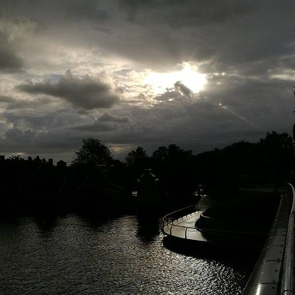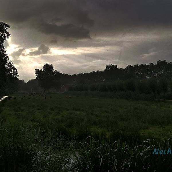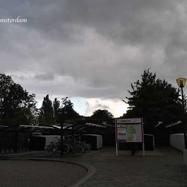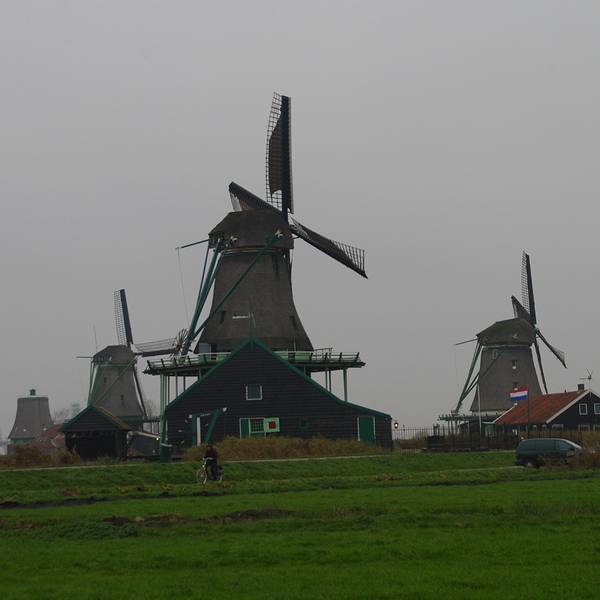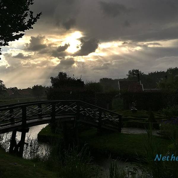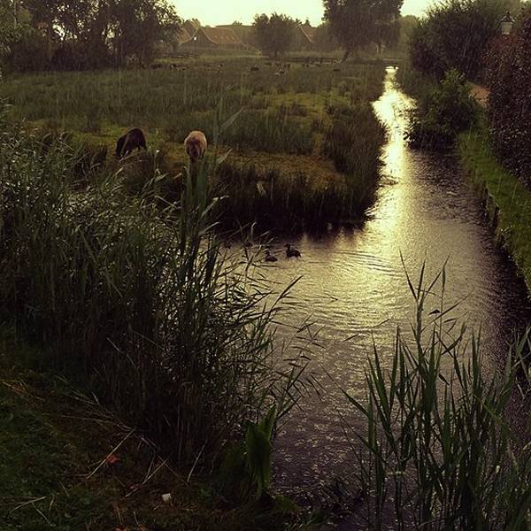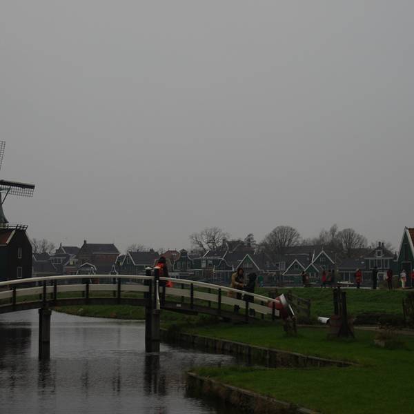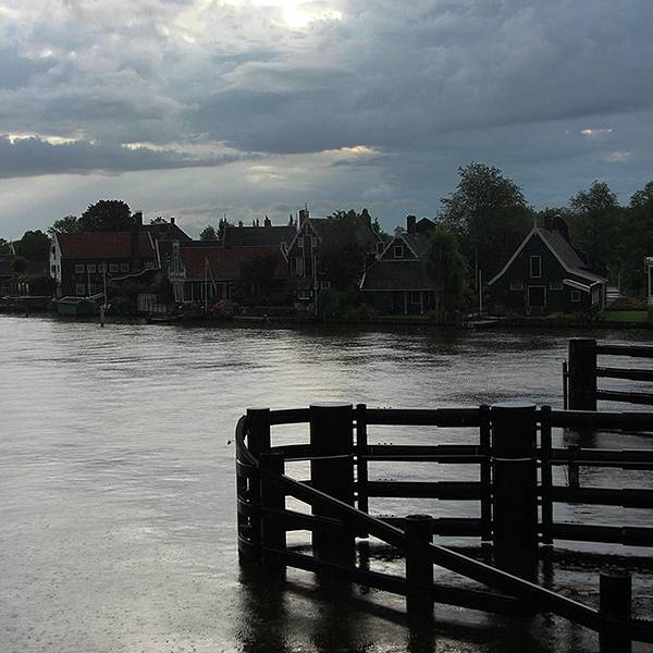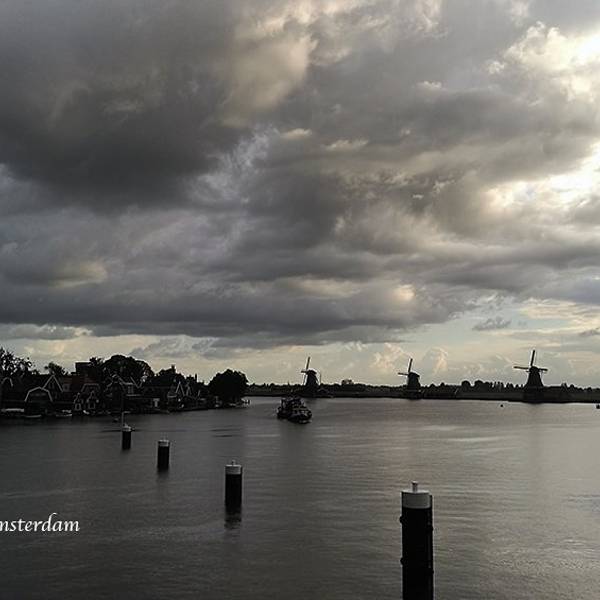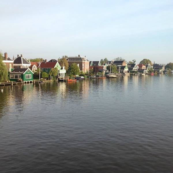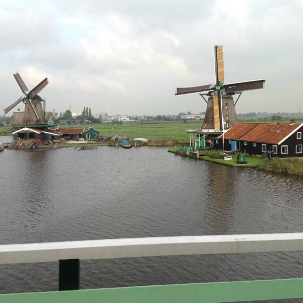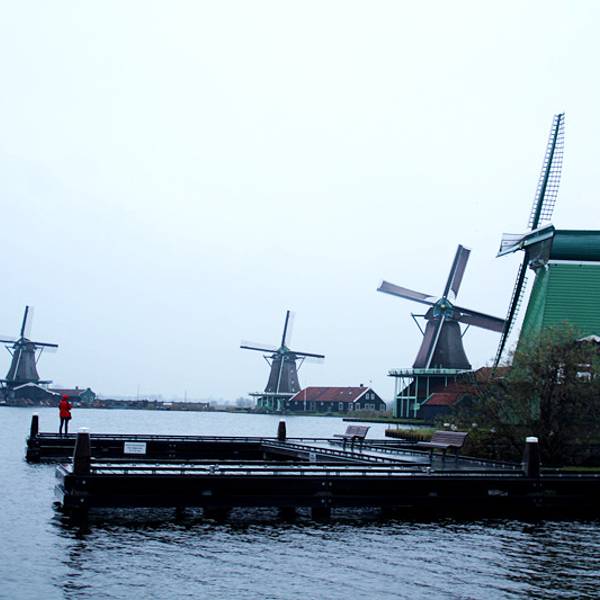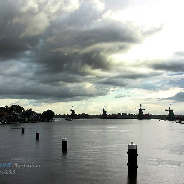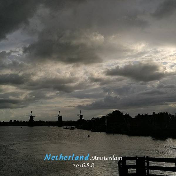 从机场去赞丹,要倒两趟火车,幸而太早,没到上班时间,车上人很少。从车窗望出去,朝阳金色的光束从铅灰厚重的云层后钻出,美倒是很美,但也不甚妙,因为车窗上开始有了雨丝,哎,这运气真好。到了赞丹,天彻底阴了,一丝阳光也没了。这二逼的荷兰天气哟,知道现在是夏天么?为什么天气预报是晴天,现实却是下雨?气温显示也只有11摄氏度?只穿着一条短袖网球裙的我,虽然有先见之明的带着那件黑风衣,然而,腿还是光着的。我高估了我的耐寒能力,也低估了荷兰的气温。