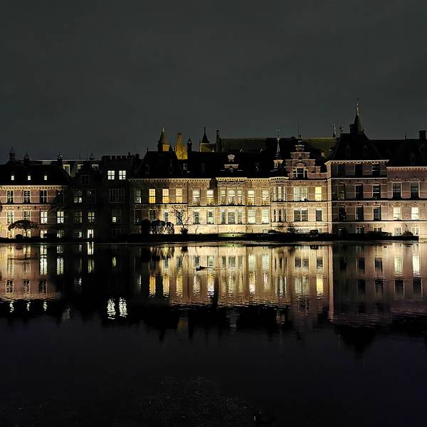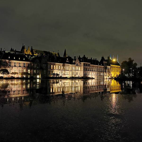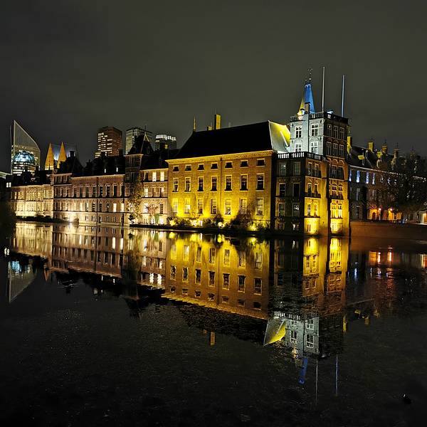 国会大厦与骑士楼是17世纪的古典建筑,它拥有精美的吐水口和工整对仗的窗户设计,从这里你可以感受到庄严古朴的坚毅精神。 国会大厦的内院院内的骑士楼(Ridderzaal,Knights’ Hall)是国会的心脏建筑,这是一座哥特式建筑,它拥有宏伟的彩色玻璃窗,描绘了荷兰城镇的盾形纹章;特别值得一提的是带有荷兰主要望族家族纹章的玫瑰窗,它带有沉重的横木屋顶,结构具有倒翻的船的形状。这象征着自更高权力而来的偷听者的木制头像,可以对大会成员进行威慑让他们不敢撒谎。 在每年9月第三个星期二的亲王日(Prinsjesdag)即国会开会日,荷兰君主会乘金马车到这里发表王座演说。在这里也会举行正式的招待会和国会间会议。1992年前,它是荷兰国会二院即荷兰下议院所在地。国会休会期间这里会开放参观,开放的部分有两个议事堂和展览室。