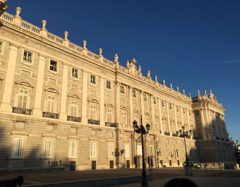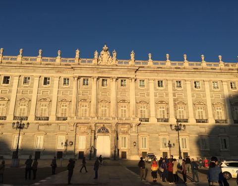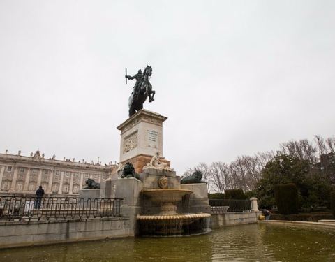 因为担心人民会反对他的统治,对皇宫进行冲击,所以他就在皇宫前面修了这么一个小广场来作为一个缓冲的地带当时的国王何赛波拿巴一世,因为担心人民会反对他的统治,对皇宫进行冲击,所以他就在皇宫前面修了这么一个小广场来作为一个缓冲的地带,上面有他的雕像。