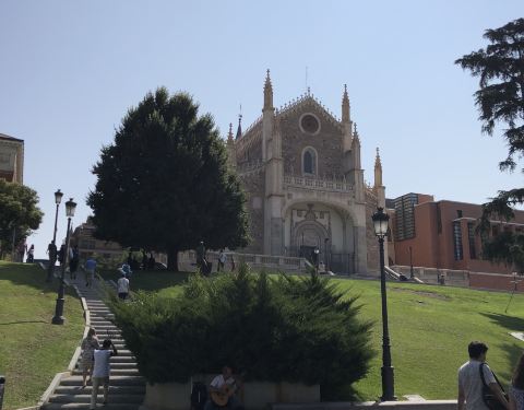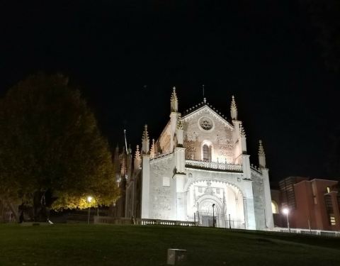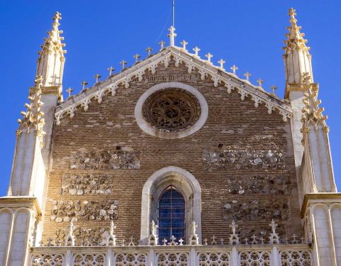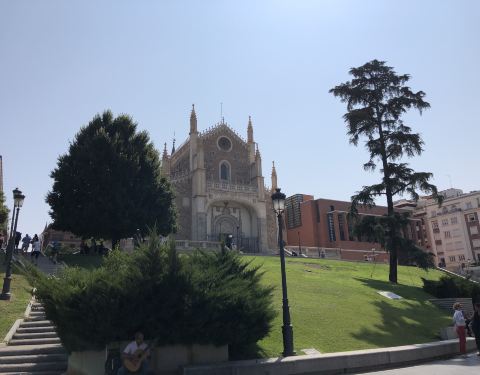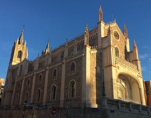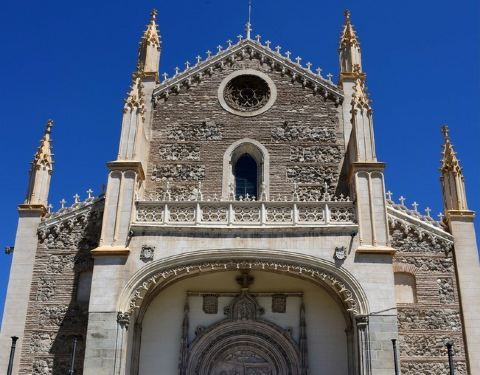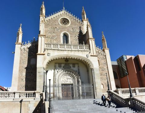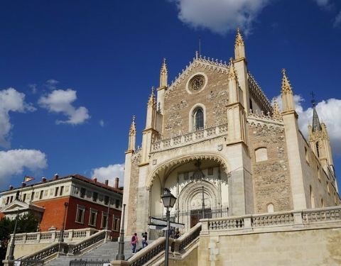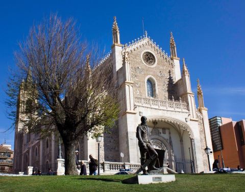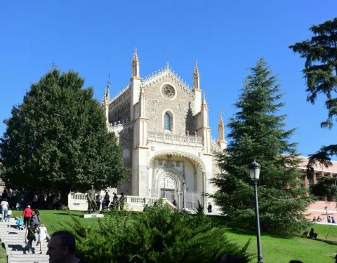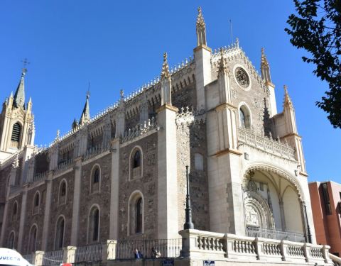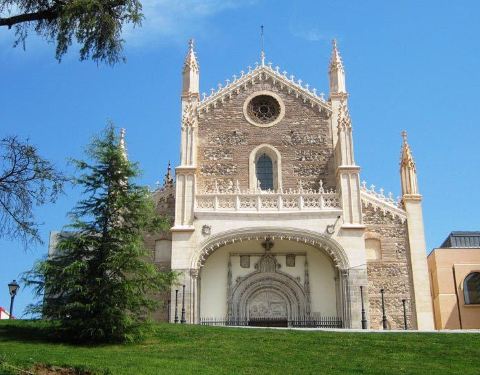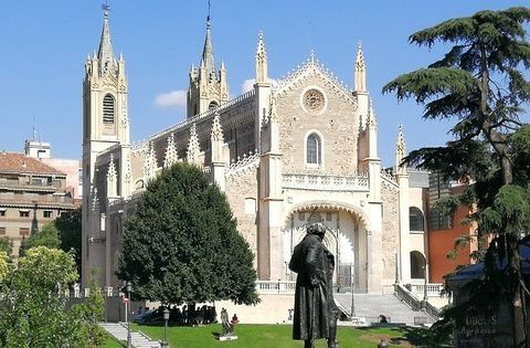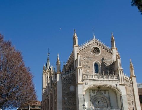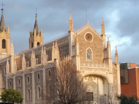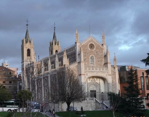 王家圣耶罗米教堂教堂呈哥特式风格,外墙装饰华丽教堂,是马德里最重要的教堂之一。国王胡安.卡洛斯一世1975年的加冕礼就在这个教堂举行。
