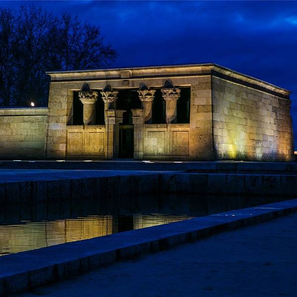 真没有想到在马德里这样的欧洲典型都市里能看到埃及的神殿。说...我们就住在东方广场,前台的妹子热情的给我们画出步行路线时,她反复强调一定要在夜里去德波神庙,说那里晚上美极了,如何个美法呢?请看我的照片。