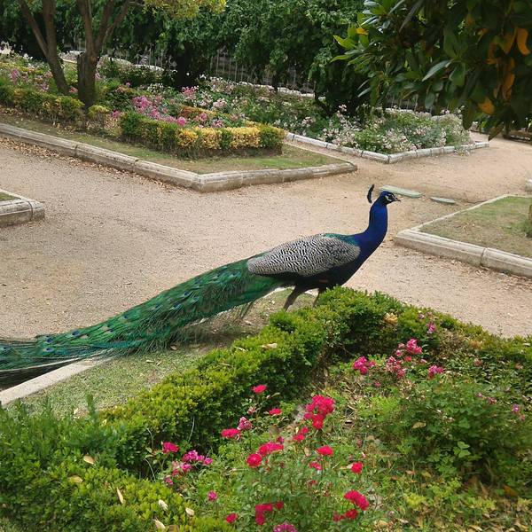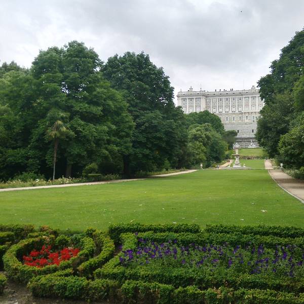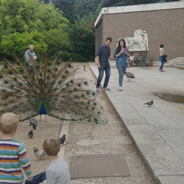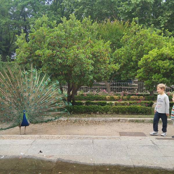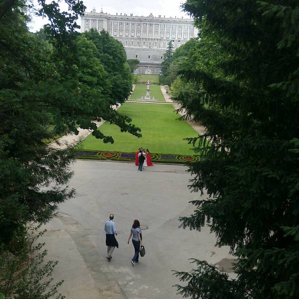 从艺术馆出来Adam说带我去一个公园,他昨天跑步的时候发现了这个地方,里面竟然有许多孔雀。原来是摩尔人花园(Campo del Moro),它在我们昨天去的马德里皇宫的背面,应该是皇室成员的后花园吧,现在是向人们免费开放的绿地公园,长长的大道中间是绿油油的草地,两边是大理石铺就的白色阶梯,一直通向一百多米开外的雄伟的马德里皇宫,这么美丽的背景图,当然会在这里碰到好几对拍婚纱照的。