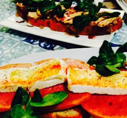 Salmón ahumado el leche de salsa de pepinillo, surimi de cangrejo y lechuga